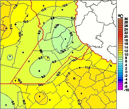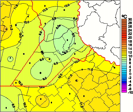 Mapa de temperaturas medias de las las últimas 72 horas.