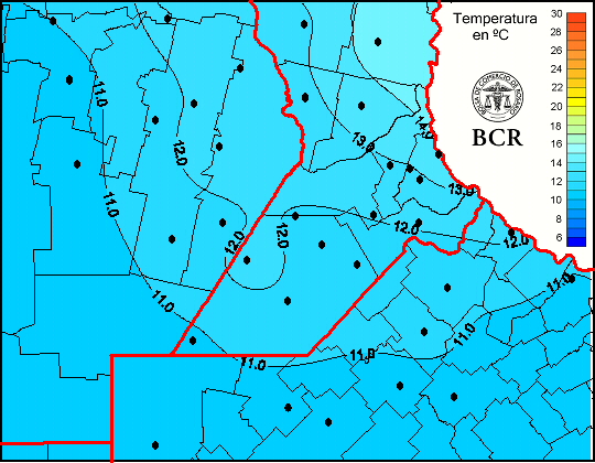 Mapa de temperaturas medias de las las últimas 24 horas.