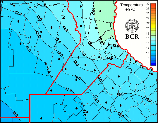 Mapa de temperaturas medias de las las últimas 24 horas.