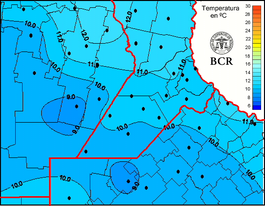 Mapa de temperaturas medias de las las últimas 24 horas.