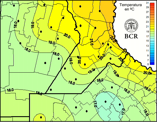Mapa de temperaturas medias de las las últimas 24 horas.