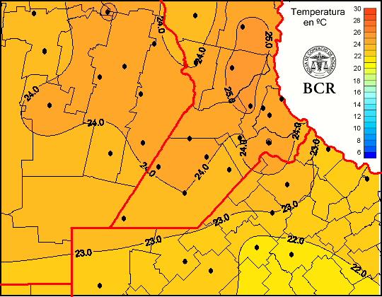 Mapa de temperaturas medias de las las últimas 24 horas.