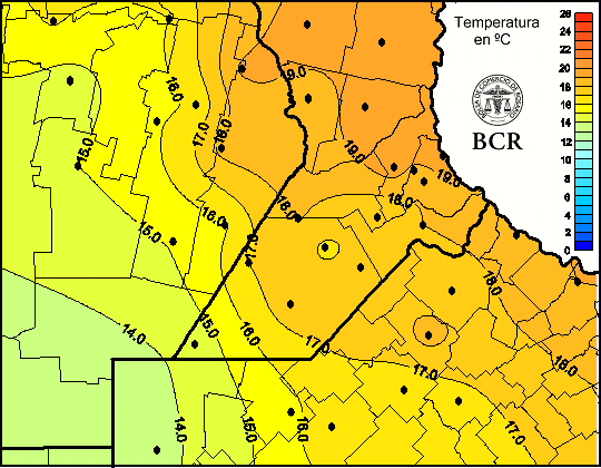 Mapa de temperaturas medias de las las últimas 24 horas.
