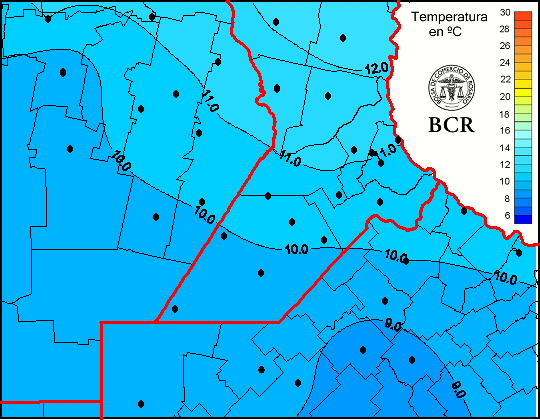 Mapa de temperaturas medias de las las últimas 24 horas.