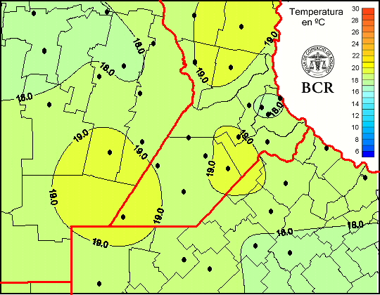 Mapa de temperaturas medias de las las últimas 24 horas.