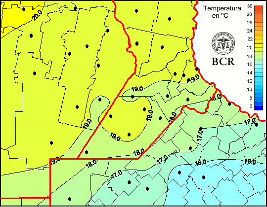 Mapa de temperaturas medias de las las últimas 24 horas.