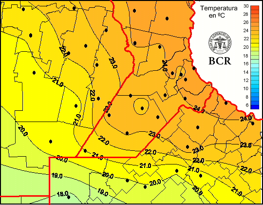 Mapa de temperaturas medias de las las últimas 24 horas.