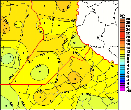 Mapa de temperaturas medias de las las últimas 72 horas.(Desde las 8:00AM hasta las 8:00AM). Se actualiza a las 10:00hs.