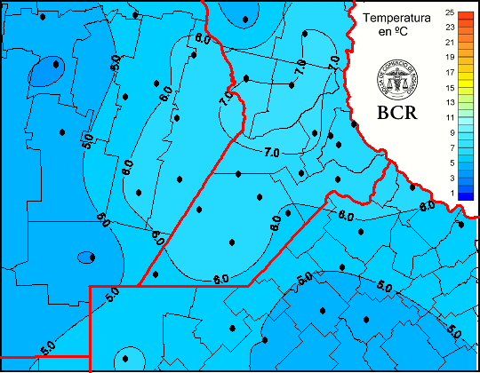 Mapa de temperaturas medias de las las últimas 24 horas.