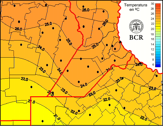 Mapa de temperaturas medias de las las últimas 24 horas.