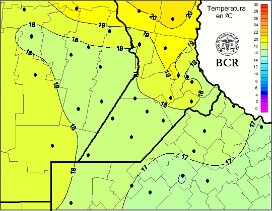 Mapa de temperaturas medias de las las últimas 24 horas.