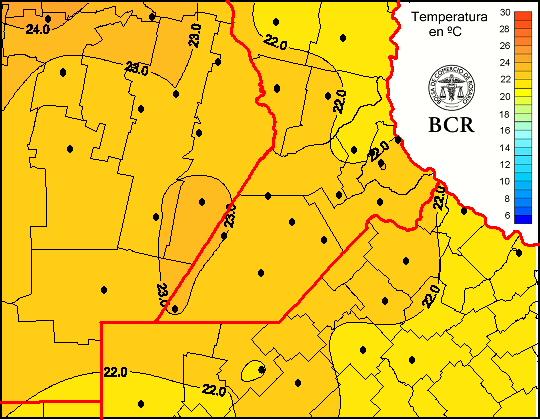 Mapa de temperaturas medias de las las últimas 24 horas.