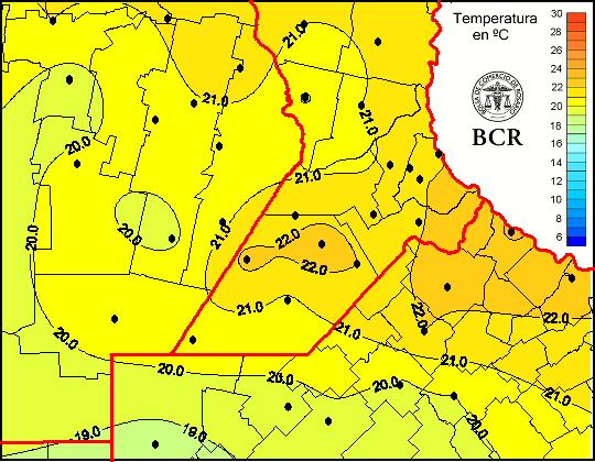 Mapa de temperaturas medias de las las últimas 24 horas.
