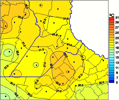 Mapa de temperaturas medias de las las últimas 72 horas.