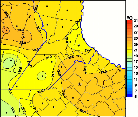 Mapa de temperaturas medias de las las últimas 72 horas.(Desde las 8:00AM hasta las 8:00AM). Se actualiza a las 10:00hs.