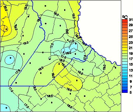 Mapa de temperaturas medias de las las últimas 96 horas.(Desde las 8:00AM hasta las 8:00AM). Se actualiza a las 10:00hs.