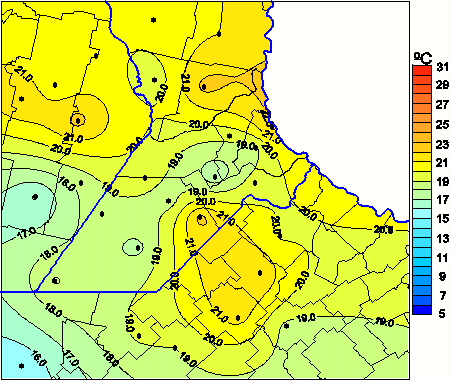 Mapa de temperaturas medias de las las últimas 96 horas.(Desde las 8:00AM hasta las 8:00AM). Se actualiza a las 10:00hs.