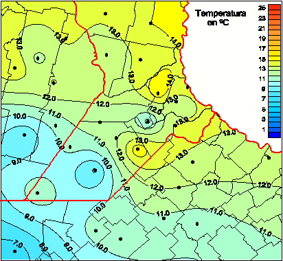 Mapa de temperaturas medias de las las últimas 72 horas.