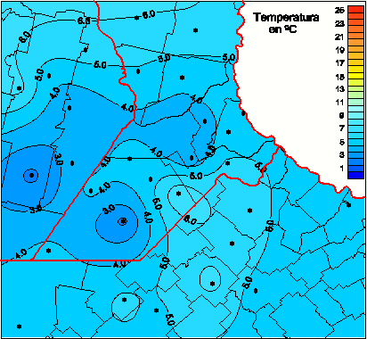 Mapa de temperaturas medias de las las últimas 48 horas.(Desde las 8:00AM hasta las 8:00AM). Se actualiza a las 10:00hs.