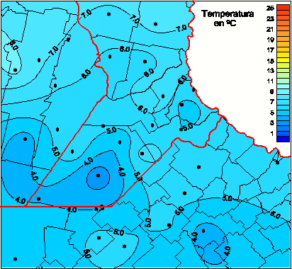 Mapa de temperaturas medias de las las últimas 0 horas.(Desde las 8:00AM hasta las 8:00AM). Se actualiza a las 10:00hs.