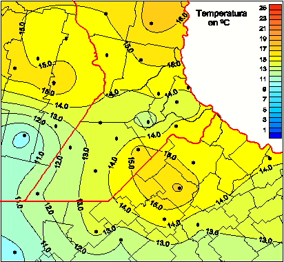 Mapa de temperaturas medias de las las últimas 96 horas.(Desde las 8:00AM hasta las 8:00AM). Se actualiza a las 10:00hs.