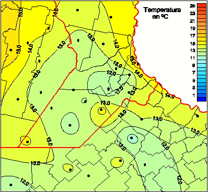 Mapa de temperaturas medias de las las últimas 72 horas.