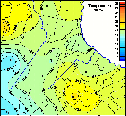 Mapa de temperaturas medias de las las últimas 48 horas.(Desde las 8:00AM hasta las 8:00AM). Se actualiza a las 10:00hs.