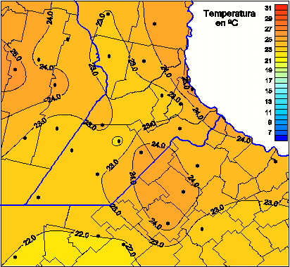 Mapa de temperaturas medias de las las últimas 72 horas.(Desde las 8:00AM hasta las 8:00AM). Se actualiza a las 10:00hs.