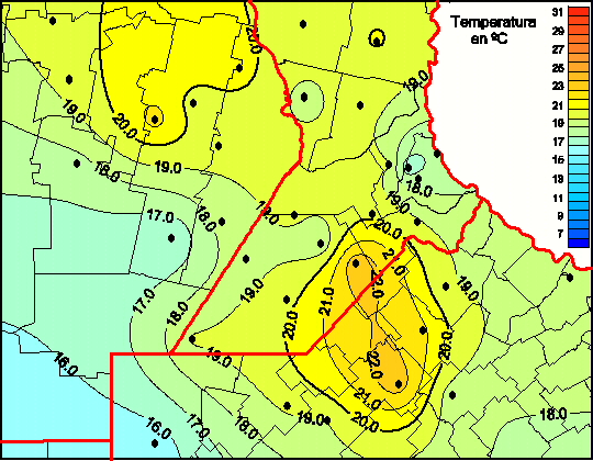 Mapa de temperaturas medias de las las últimas 72 horas.(Desde las 8:00AM hasta las 8:00AM). Se actualiza a las 10:00hs.