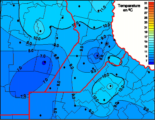 Mapa de temperaturas medias de las las últimas 96 horas.(Desde las 8:00AM hasta las 8:00AM). Se actualiza a las 10:00hs.