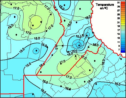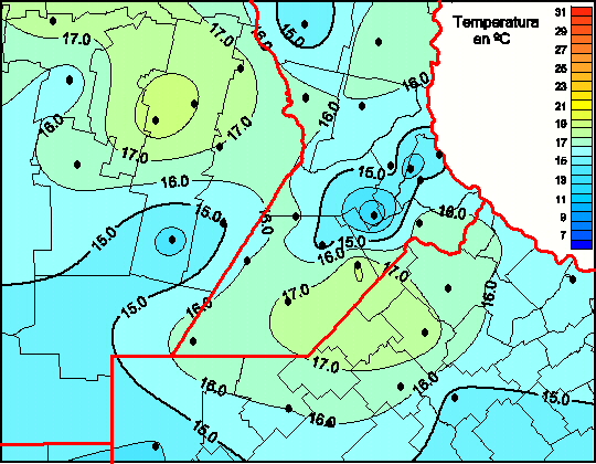 Mapa de temperaturas medias de las las últimas 96 horas.(Desde las 8:00AM hasta las 8:00AM). Se actualiza a las 10:00hs.