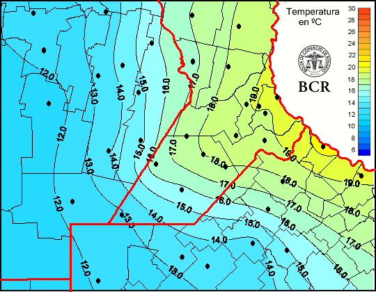 Mapa de temperaturas medias de las las últimas 24 horas.