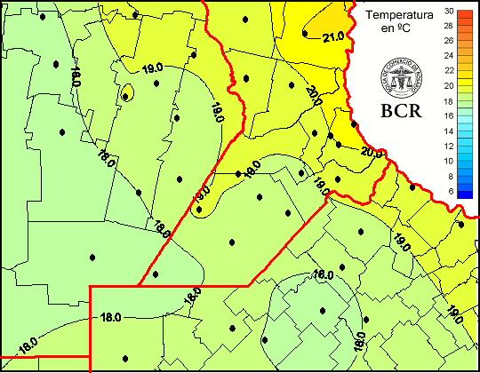Mapa de temperaturas medias de las las últimas 24 horas.