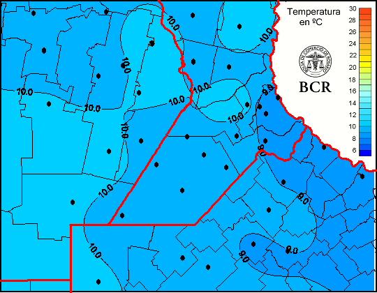 Mapa de temperaturas medias de las las últimas 24 horas.