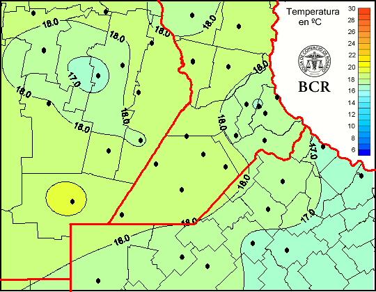 Mapa de temperaturas medias de las las últimas 24 horas.