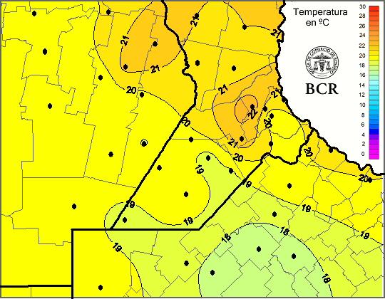 Mapa de temperaturas medias de las las últimas 24 horas.