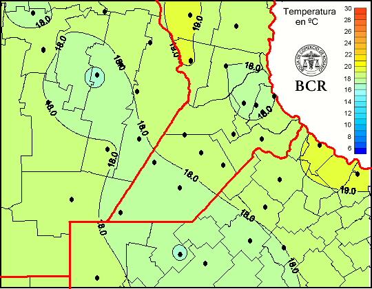 Mapa de temperaturas medias de las las últimas 24 horas.