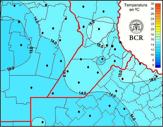 Mapa de temperaturas medias de las las últimas 24 horas.