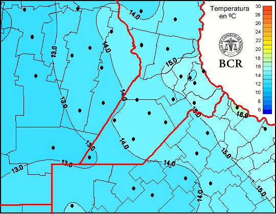Mapa de temperaturas medias de las las últimas 24 horas.