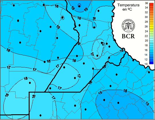 Mapa de temperaturas mínimas de las últimas 24 horas.