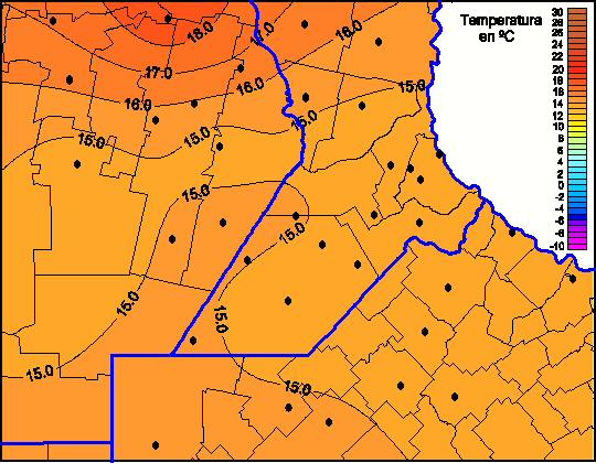 Mapa de temperaturas mínimas de las las últimas 72 horas.