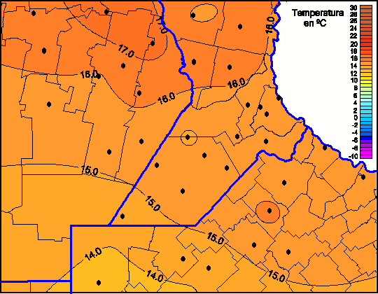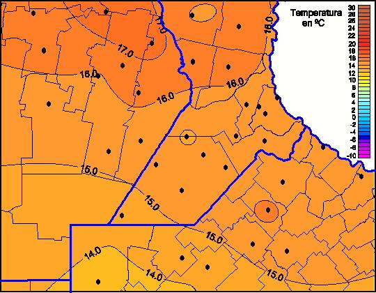 Mapa de temperaturas mínimas de las las últimas 120 horas.