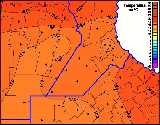 Mapa de temperaturas mínimas de las las últimas 72 horas.