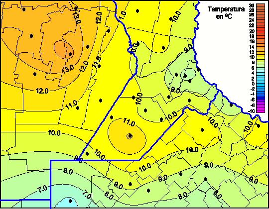 Mapa de temperaturas mínimas de las las últimas 72 horas.