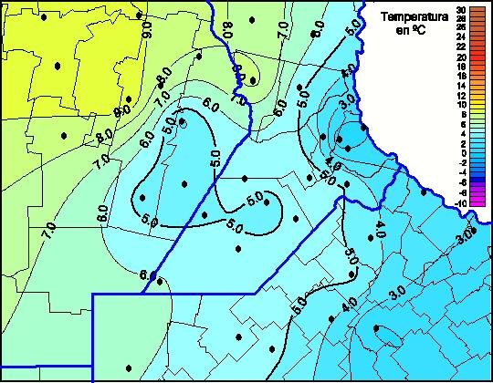 Mapa de temperaturas mínimas de las las últimas 72 horas.