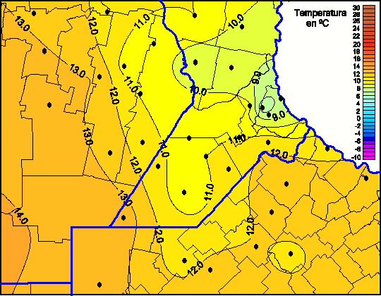 Mapa de temperaturas mínimas de las las últimas 72 horas.