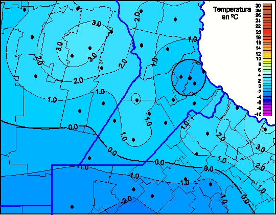 Mapa de temperaturas mínimas de las las últimas 72 horas.
