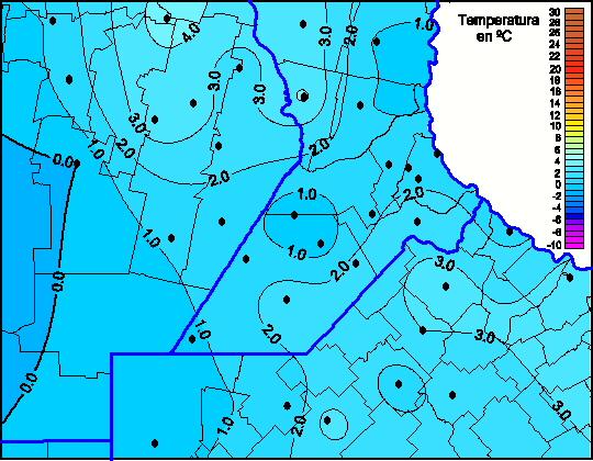 Mapa de temperaturas mínimas de las las últimas 72 horas.