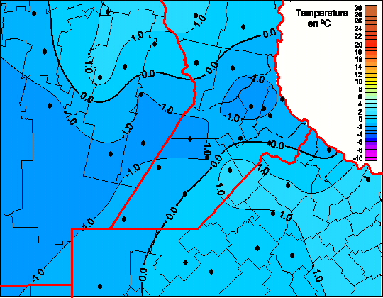 Mapa de temperaturas mínimas de las las últimas 72 horas.