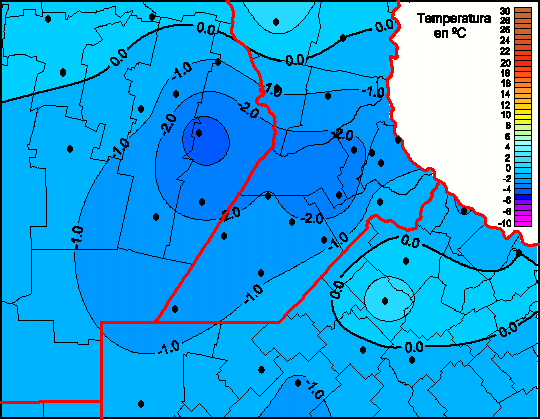 Mapa de temperaturas mínimas de las las últimas 72 horas.